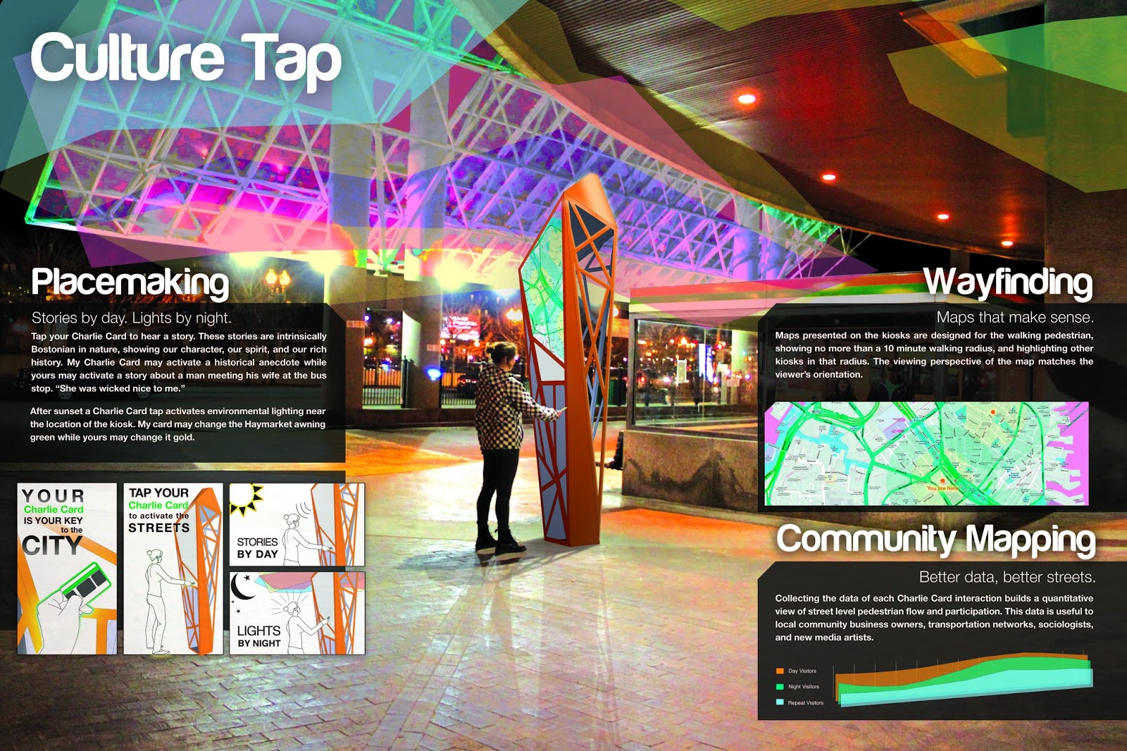 | One of the winning proposals for the Connect Historic Boston Call for Public Art; submitted by Gregory MacGlashing, a senior in Architecture at the Wentworth Institute of Technology |