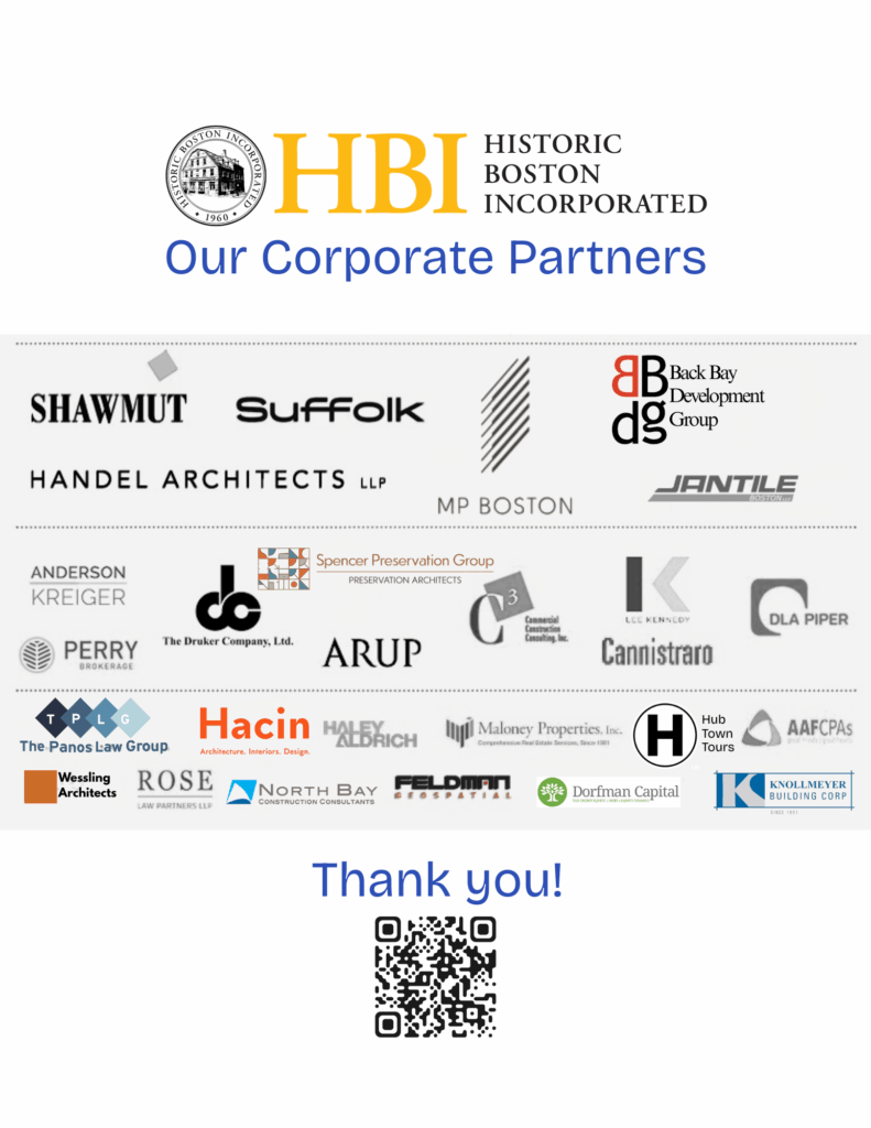 HBI’s Corporate Support Program is an exciting way to help strengthen Boston’s neighborhoods and protect the historic places that make our city unique. Partnership with HBI helps promote your company’s civic contributions and matches your company’s mission with a trusted non-profit organization whose high quality work is respected throughout the city and its neighborhoods