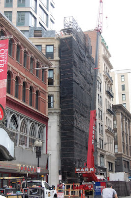 This preservation drama is the precursor (as it often is) to Suffolk University?s more recent acquisition and rehabilitation of the Modern Theater for a dormitory. Due to the deteriorated condition of the building, Suffolk University made the decision to carefully take down the fa?ade, documenting each stone?s exact location, and build a new building in its place, which will contain a small, multi-use theater and more dormitory space on the upper floors (mostly in the new tower being constructed behind the original building). The fa?ade of the historic building is being rebuilt and will soon take back its rightful place in the vibrant street-wall, standing tall with neighbors Paramount Theater (Emerson University) and the Boston Opera House.