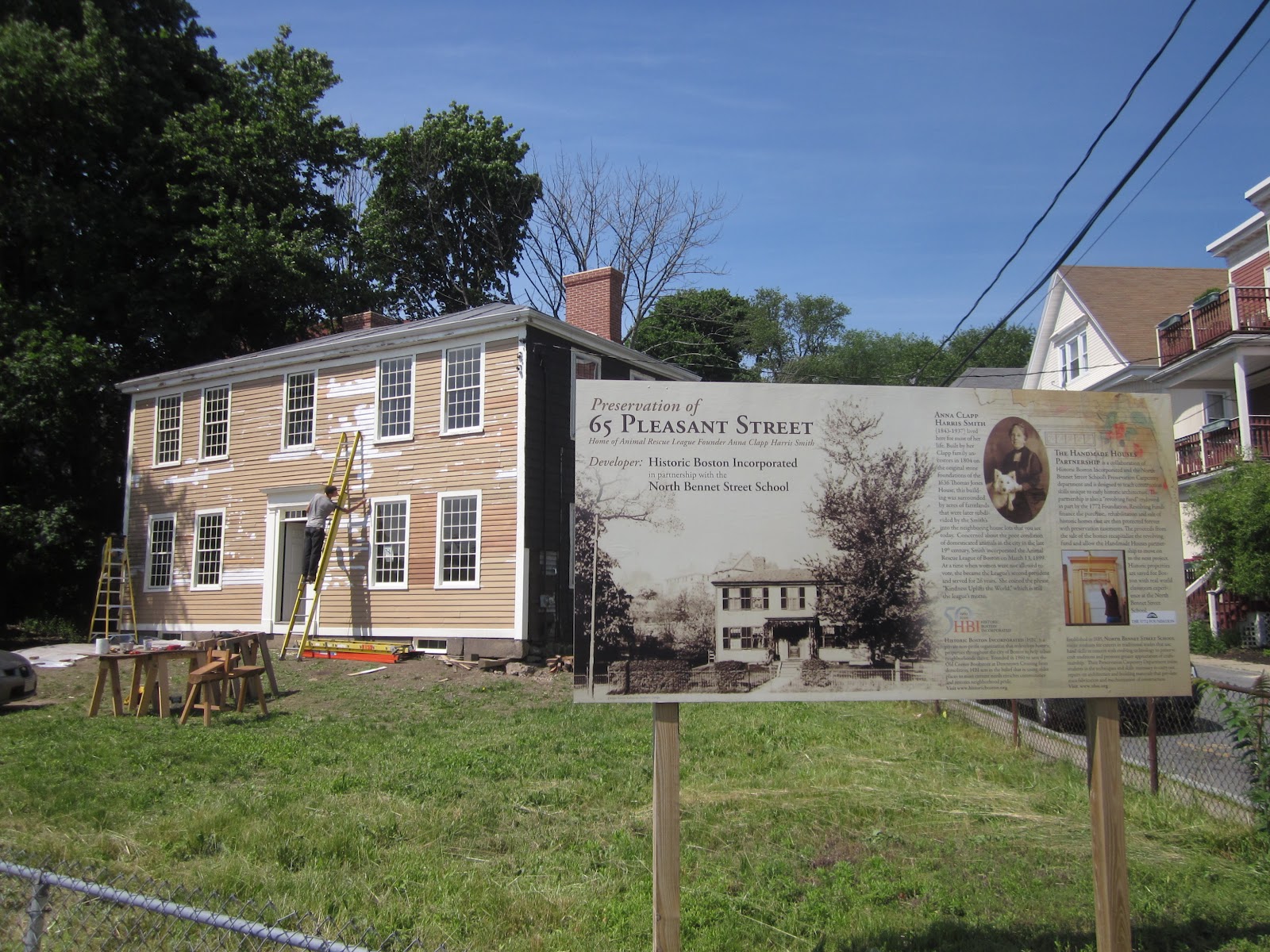 Pop the champagne, another almost-Boston Landmark is in the hands of a happy new owner! Last week 65 Pleasant Street in Dorchester, also known as the Anna Clapp Harris Smith House, was sold to first time homebuyer Stacey Cordeiro. For two years, Historic Boston and the North Bennet Street School have been working together to stabilize the structure and rehabilitate the most public facades of the house through a partnership called ?Handmade Houses.? This endeavor was funded by a grant from the 1772 Foundation.