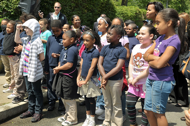 The house was owned by Ella Little Collins, the sister of Malcolm X, and was where Malcolm lived for a period of time between 1941 to 1947. Historic Boston Inc. has been working with Mr. Rodnell Collins-son of Ella and nephew of Malcolm X, and current owner of this Boston landmark- to create a plan for the property. Currently, the plan is to bring the house back to its appearance in the 1940’s, when Malcolm X resided there, as well as to link the property to an academic institution for graduate student housing. Mayor Thomas Menino, Boston City Council Member Charles Yancy, the Collins Family, as well as Kimvy Mguyen’s second grade class from the nearby Higginson-Lewis K-8 School were all in attendance at the announcement. Craig Bailey, of Perspective Photo, photographed the event, and a selection of his images are included here. See the rest of the photos of the event here.