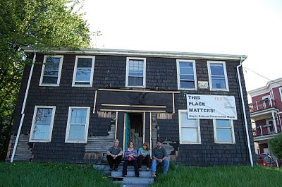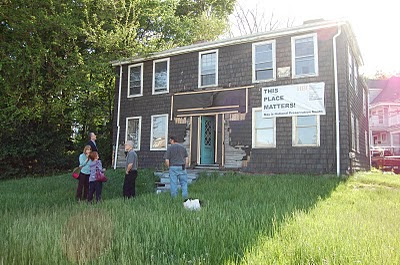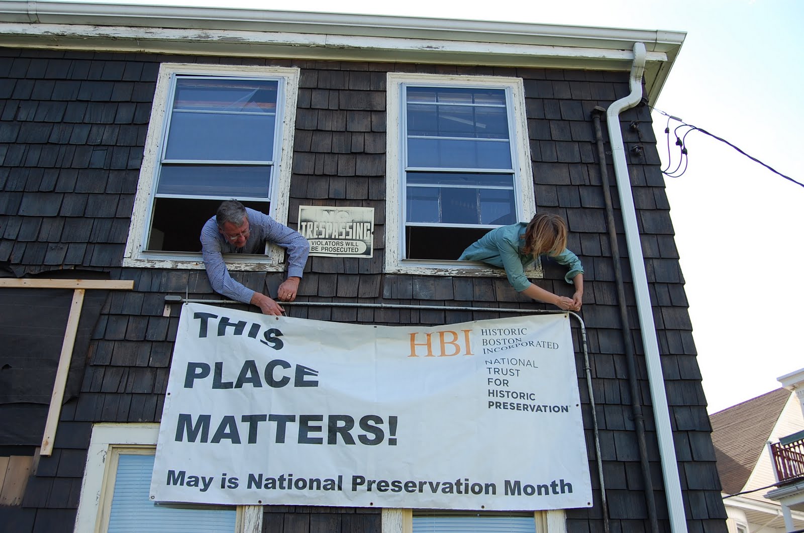 This week, a group of Historic Boston and North Bennet Street School employees told the world that 65 Pleasant Street in Dorchester matters. As we struggled to hang up our large white banner from the second floor of 65 Pleasant Street, neighbors passing by stopped to watch from the sidewalk. Squinting at the banner, some approached us, asking what we were doing to the building. When we explained the premise of the project and the Handmade Houses partnership between Historic Boston and North Bennet Street School, we received a great response. Some neighbors know a lot about the building?s history; for many others this may be a new window into their community they?ve never known. And isn?t that just the point?