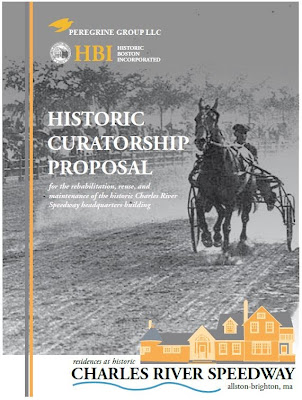 Earlier this summer, the Department of Conservation and Recreation?s (DCR) Historic Curatorship Program put out a Request for Proposals (RFP) for the historic Charles River Speedway HeadquartersBuilding in the Allston/Brighton neighborhood of Boston. The Headquarters building, built in 1899 is all that remains of the Charles River Speedway. The Speedway consisted of a mile long race course for horse cart, or ?sulky racing? as well as a course for bike racing. It was developed in the wake of increased automobile traffic on other main roads like Cambridge and Beacon, which had left little room for recreational vehicles. Until the 1960?s, the Speedway stretched all the way to the Harvard Football Stadium. After that time, with no more Speedway to look after, the Headquarters building fell into disrepair. However, it is a beautiful building, with a great story and a layout that offers many options for redevelopment. With this in mind, HBI just finished a submission for consideration by DCR.