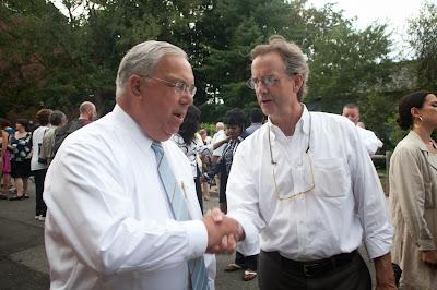 | Blog post author, David Amory, of Amory Architects, greets Mayor Menino at the Kittredge House Groundbreaking Celebration in June. |