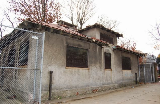 The Comfort Station (a polite term for restrooms) is a one story stucco and tile Mission Style building that has been unused since 1977. Built in 1912, it was designed by architect William Besarick, who designed the Roger Clap School on Harvest Street and the municipal building at the corner of Columbia Road and Bird Street as well as many triple-deckers throughout the area. Besarick also designed the George Milliken House, at 44 Virginia Street, which is a Boston Landmark.