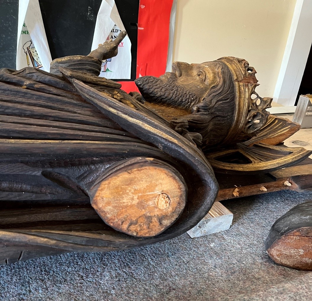 The Spencer Preservation Group team then securely reattached the Christ figure to the reredos so that no further mishaps could occur.
